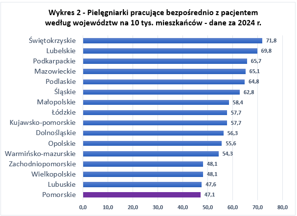 Analiza dostępnych danych wskazuje, że Pomorskie stoi dziś przed poważnym wyzwaniem kadrowym. Choć region może poszczycić się stosunkowo młodą kadrą lekarską i rosnącą liczbą studentów kierunków medycznych, to kryzys w zakresie pielęgniarstwa staje się coraz bardziej dotkliwy. Wysoka średnia wieku czynnych zawodowo pielęgniarek wskazuje na pogłębienie deficytu w nadchodzących latach. Zmiany demograficzne, starzenie się społeczeństwa będzie generowało dodatkowe zapotrzebowanie na usługi medyczne, a tym samym presję na wyższą dostępność personelu medycznego. Sytuacja wymaga dalszych efektywnych działań w obszarze kształcenia kadr medycznych, zwiększenia atrakcyjności zawodów medycznych oraz optymalnego rozlokowania zasobów w ramach województwa.