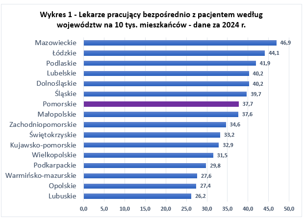 Dostępność i jakość usług medycznych w dużej mierze zależą od zasobów kadrowych — liczby lekarzy, lekarzy stomatologów, pielęgniarek, położnych i fizjoterapeutów. Sytuacja województwie pomorskim charakteryzuje się dużymi kontrastami: z jednej strony region może pochwalić się jednymi z najmłodszych lekarzy w kraju, z drugiej — zmaga się z wyraźnym niedoborem pielęgniarek, których średni wiek systematycznie rośnie. Celem niniejszego opracowania jest przedstawienie aktualnego stanu kadr medycznych w Pomorskiem na tle danych ogólnopolskich, z uwzględnieniem dostępnych statystyk Głównego Urzędu Statystycznego oraz informacji własnych Wojewódzkiego Urzędu Pracy w Gdańsku.