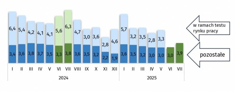 Zmiany statystyk dot. rynku pracy obserwowane od czerwca br. nie oznaczają istotnego pogorszenia sytuacji na rynku pracy, a są w dużej mierze konsekwencją nowelizacji przepisów wprowadzonych Ustawą o rynku pracy i służbach zatrudnienia oraz Ustawą o warunkach dopuszczalności powierzania pracy cudzoziemcom na terytorium Rzeczypospolitej Polskiej.